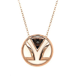 • UNMISTAKABLE ELEGANCE - This glamorous handcrafted 14 karat rose gold plated 925 sterling silver pendant necklace by Le Vian features a cut and polished brown smoky quartz with a spectacularly original triangle shape and checkerboard cut finish accenting Le Vian’s round logo, which has modern curved lines mixed with geometric angles. The slide style pendant hangs on an elegant 18” cable chain that fastens with a spring ring clasp. This pendant necklace is a gift that is sure to delight her.