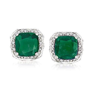 The pair features 4.00 ct. t.w. cushion-cut emeralds dazzled by .10 ct. t.w. white topaz and .60 ct. t.w. emerald rounds in polished sterling silver. Post/clutch, white topaz and emerald stud earrings. Each Ross-Simons item arrives in a fine jewelry presentation box. Shop Ross-Simons jewelry risk-free as all items include a 30-day, 100% money-back guarantee. Stone Information Gem Type 1: Emerald Stone Cut 1: Good-Cut Stone Color 1: Green Stone Clarity 1: Green Stone Shape 1: Square-Shape Stone Creation Method 1: Natural Stone Treatment Method 1: Oiled Stone Weight 1: 4.00 Carats Number Of Stones 1: 2 Gem Type 2: Emerald Stone Cut 2: Good-Cut Stone Color 2: Green Stone Clarity 2: Green Stone Shape 2: Round-Shape Stone Creation Method 2: Natural Stone Treatment Method 2: Oiled Stone Weight 2: 0.60 Carats Number Of Stones 2: 40 Gem Type 3: Topaz Stone Cut 3: Good-Cut Stone Color 3: White Stone Clarity 3: White Stone Shape 3: Round-Shape Stone Creation Method 3: Natural Stone Treatment Method 3: Heat-Treated,Irradiated Stone Weight 3: 0.10 Carats Number Of Stones 3: 24.