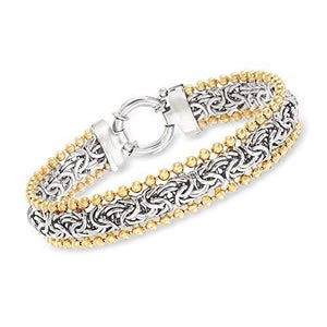 Handcrafted Ross-Simons Byzantine Beaded Bracelet in Sterling Silver and 18kt Yellow Gold Over Sterling in sterling silver Byzantine links and 18kt yellow gold over sterling silver bead edging, this bracelet will be your new go-to piece. Springring clasp, Byzantine beaded bracelet. Each Ross-Simons item arrives in a fine jewelry presentation box. Shop Ross-Simons jewelry risk-free as all items include a 30-day, 100% money-back guarantee. Silver Byzantine bracelet.