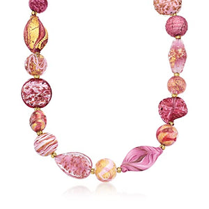 Featuring 4-22mm multi-shaped Murano glass beads in an artful array of pink and gold designs that are truly individual yet perfectly complementary to one another. Features 18kt yellow gold over sterling silver spacer beads and a lobster clasp with a 2" extender. Graduates from 1/4" to 7/8" wide. Murano glass is unique and will vary. Murano glass bead necklace. Each Ross-Simons item arrives in a fine jewelry presentation box. Shop Ross-Simons jewelry risk-free as all items include a 30-day, 100% money-back guarantee. Color: Gold.