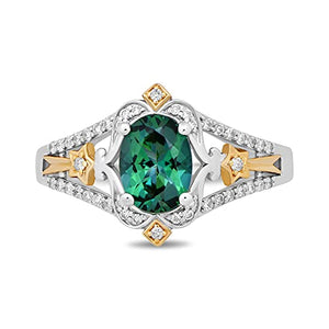 - Elegant Design: The ring showcases an 8x6MM Oval Shape Created Emerald, adorned with 1/5 Cttw of natural white round diamonds.