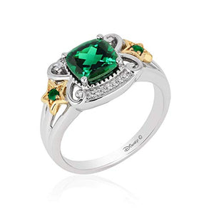 Jewelili Enchanted Disney Fine Jewelry 14K Yellow Gold Over Sterling Silver Cushion Created Emerald and Natural White Round Diamond Accent Tinkerbell Star Ring