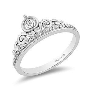 Indulge in the magic of enchantment with the Jewelili Enchanted Disney Cinderella Carriage Ring—an officially licensed Disney Jewelry masterpiece. Crafted in Sterling Silver and adorned with 1/10 CTTW of Natural White Round Diamonds, this ring is more than an accessory; it's a sparkling journey inspired by the timeless tale of Cinderella.