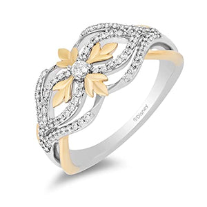 Jewelili Enchanted Disney Fine Jewelry Sterling Silver and 10K Yellow Gold 1/4 Cttw Natural White Round Diamond Anna Ring