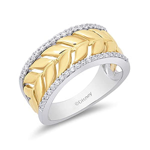 Jewelili Enchanted Disney Fine Jewelry Sterling Silver and 10K Yellow Gold 1/5 Cttw Natural White Round Diamond Anna Wheat Anniversary Band