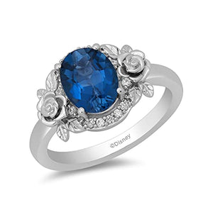 Royal Design: Crafted in sterling silver, this ring boasts a royal design inspired by the magical world of Cinderella. Two silver blooms delicately flank a 9x7 mm oval London Blue Topaz, adding a touch of whimsy to the piece.