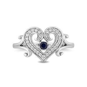 Jewelili Hallmark Fine Jewelry Sterling Silver 2.5 MM Round Created Blue Sapphire with 1/6 Cttw Natural White Round Diamond Curling Heart Ring