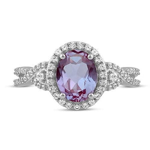 Jewelili Sterling Silver 9x7mm Oval Alexandrite and Round Created White Sapphire Ring