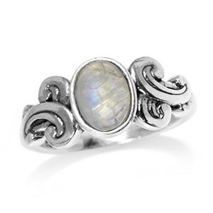 Silvershake 8X6mm Natural Oval Shape Moonstone 925 Sterling Silver Victorian Style Ring