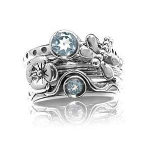 - Silvershake Set of 4 Genuine Blue Topaz 925 Sterling Silver Dragonfly and Flower Stack Stackable Rings, is shipped with anti-tarnish protection in reinforced gift boxes & satin-style pouches; guarantee far-outlasting competitors