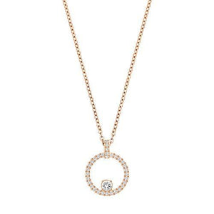 - Items delivered: 1 x Swarovski Creativity Collection necklace, 14 7/8 inch chain, 5/8 x 3/4 inch rose-gold tone plated, white crystal circular design pendant, with Swarovski necklace box
