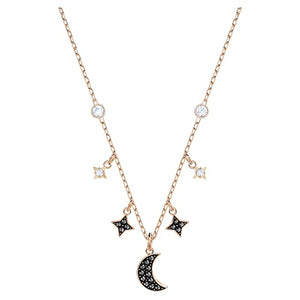 Swarovski Symbolic Moon Necklace with a Black Crystal Pavé Moon and Black and White Crystal Studded Star Charms on a Gold-Tone Plated Chain