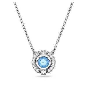 • Items delivered: 1 x Swarovski Sparkling Dance round pendant, 14 7/8 inch rhodium plated chain, with sparkling blue and white crystals in a circle design, complete with Swarovski necklace box
