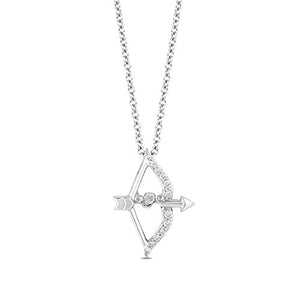 Jewelili Enchanted Disney Fine Jewelry Sterling Silver 1/10 CTTW Diamond Merida Bow and Arrow Pendant