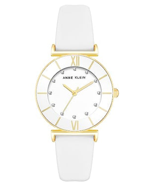 Anne Klein Women's White/Gold Glitter Accented Strap Watch: Embrace Radiance in Every Moment