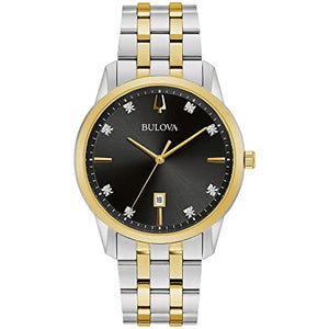 Bulova Men's Classic Sutton 3-Hand Diamond Two Tone Stainless Steel, Black Dial Style: 98D165