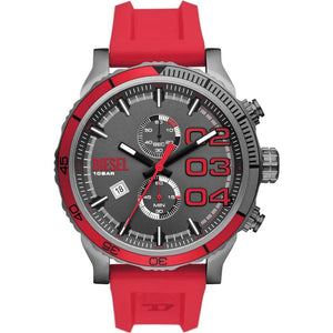 Diesel DZ4613 Gray Chronograph Dial Red Silicone Double Down 2.0: Make a Bold Statement with Unrivaled Style