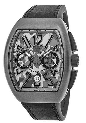 Franck Muller Vanguard Mens Automatic Date Chronograph Grey Camouflage Face Grey Rubber Strap Watch V 45 CC DT Camouflage TTMC.TT