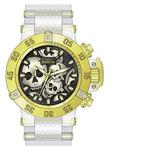 Features of Invicta Men's 50mm Subaqua Chronograph White Gold Black Skull Dial Watch 37328