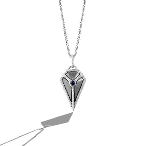 Features and Galactic Elegance of Jewelili Star Wars™ Fine Jewelry THE STAR DESTROYER WOMEN'S PENDANT 1/6 CT.TW. White Diamonds Genuine Blue Sapphire Silver