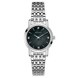 • Stainless steel with 4 diamonds individually hand-set on a black mother-of-pearl dial