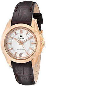 Show off your chic style with Bulova Women's 97M104 Precisionist Longwood Rose-Tone Brown Leather Watch.