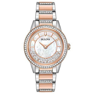 From the Crystals Turn style Collection, Bulova Women's Japanese Quartz Dress Watch (Model: 98L246), this elegant timepiece is perfect for you.