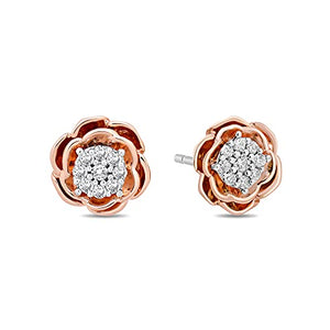 Features of Jewelili Enchanted Disney Fine Jewelry 14K Rose Gold over Sterling Silver 1/5 Cttw Diamond Belle Rose Stud Earrings