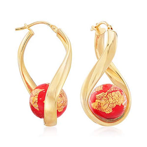 In this artisanal pair of hoop earrings, 12mm red Murano glass beads are nestled inside twisted loops of polished 18kt yellow gold over sterling silver. Hanging length is 1 1/4". Murano glass beads are unique and may vary. Snap-bar, red Murano glass bead twisted hoop earrings. Each Ross-Simons item arrives in a fine jewelry presentation box. Shop Ross-Simons jewelry risk-free as all items include a 30-day, 100% money-back guarantee. Color: Gold, Red.