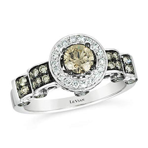 Le Vian presents the Chocolate Diamond Halo Scalloped Ring, a mesmerizing creation that redefines elegance. With a large fancy brown diamond at its center, encircled by a dazzling halo of white and brown diamonds in black rhodium-plated settings, this ring is a statement piece of unmatched beauty.
