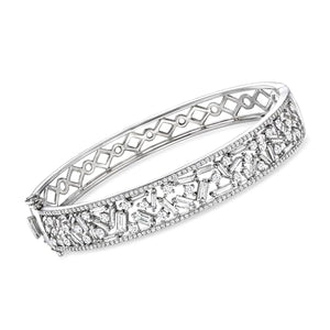 Ross-Simons 3.00 ct. t.w. Round and Baguette Diamond Bangle Bracelet in 14kt White Gold. 8 inches