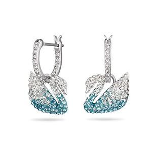 Features of Swarovski Iconic Swan Collection Women's Pierced Earrings, Set of Blue and White Crystal Hoops with Rhodium Plating