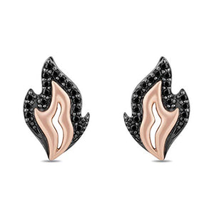 Enchanted Disney Fine Jewelry 10K Rose Gold and Black Rhodium over Sterling Silver Maleficent Flame Earrings with 1/4 CTTW Black Diamonds