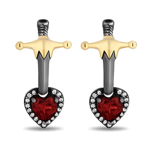 Exquisite Design: Crafted in black rhodium and 14K yellow gold over sterling silver, these earrings are adorned with 1/8 CTTW of black and white diamonds, along with striking red garnets. The combination of these precious gemstones creates a mesmerizing contrast that reflects the dark glamor of the Evil Queen herself.