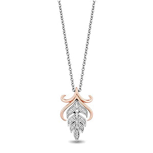 Experience the enchantment of the Anna Wheat Pendant Necklace from Enchanted Disney Fine Jewelry. This captivating necklace celebrates the spirited and adventurous Princess Anna from the beloved Frozen franchise. Crafted with sterling silver and 10K rose gold, adorned with a dazzling 1/15 cttw of natural white round diamonds, this necklace is a symbol of courage, love, and determination.