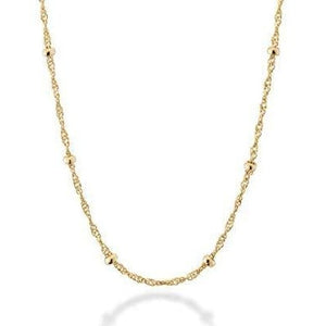 - DAINTY NECKLACE WITH A MINIMALIST STYLE - PURE 925 STERLING SILVER - Handcrafted of 925 sterling silver to give your jewelry a brilliant shine. Plated with a thick layer of 40 mils 18K yellow gold for added durability. Sterling silver is hypoallergenic and nickel-free making this a great choice for individuals with very sensitive skin. Unlike cheap metals, sterling silver will not irritate your skin. Necklace choice of length from 16 to 30 inch, Bead width 2.5mm. Singapore chain. Strong and secure lobster clasp closure.