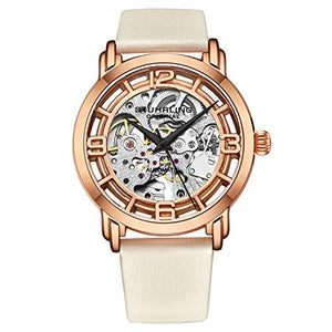 Features of Stuhrling Original Watches for Women Automatic Watch - Skeleton Watches for Women - Self Winding Womens Dress Watch with Rose Gold Face and White Leather Watch Band Mechanical Wrist Watch for Woman