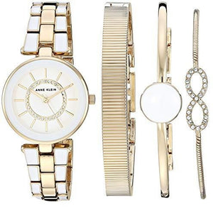 Anne Klein Women's AK/3286WTST Premium Crystal Accented Gold-Tone and White Watch and Bracelet Set
