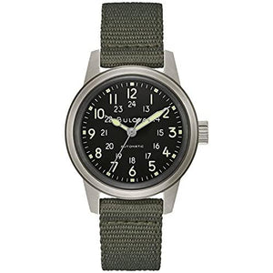 Features of Bulova Men's Stainless Steel Automatic Watch with Nylon Strap, Green, 18 (Model: 96A259)