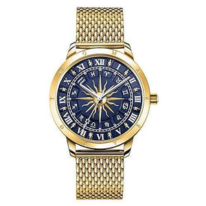 Colors > Dial: Black, Strap: Gold, Case: Gold. Very comfortable Stainless steel strap. The water resistance is 5 ATM. A scratch proof hardened, Mineral glass protects your watch from involuntary injuries.