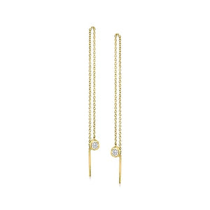 Discover the epitome of contemporary elegance with the RS Pure Bezel-Set Diamond Threader Earrings by Ross-Simons. Crafted in luxurious 14kt yellow gold, these earrings boast a sophisticated design featuring bezel-set brilliant-cut round diamonds for a touch of timeless glamour.