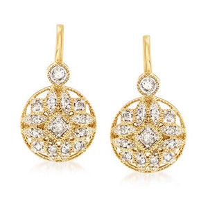 Dazzling .50 ct. t.w. round brilliant-cut diamonds bedeck the circle drops, creating complex, interesting patterns. Crafted in polished 18kt yellow gold over sterling silver. Hanging length is 7/8". Hinged post, diamond multi-shape drop earrings. Each Ross-Simons item arrives in a fine jewelry presentation box. Shop Ross-Simons jewelry risk-free as all items include a 30-day, 100% money-back guarantee.