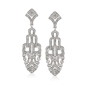 Ross-Simons 1.00 ct. t.w. Diamond Art Deco-Style Drop Earrings in Sterling Silver