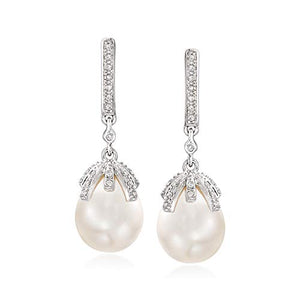 - Sterling silver, diamond and cultured freshwater pearl earrings for women.