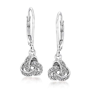 Set in polished sterling silver. Hanging length is 1". Leverback, diamond accented love knot drop earrings. Each Ross-Simons item arrives in a fine jewelry presentation box. Shop Ross-Simons jewelry risk-free as all items include a 30-day, 100% money-back guarantee. Best Silver Drop Earrings for Women.