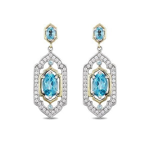 Inspired by Jasmine's strong willed and adventurous characteristics, the Jasmine's collection feature magic lamp in diamond and blue topaz. Sterling Silver and 10K Yellow Gold 1/5Cttw Jasmine Earrings.