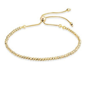 Handmade by skilled artisans in Italy, each round diamond-cut bead is individually strung by hand to create a brilliant shine. The unique slide clasp allows the bracelet to adjust to the perfect fit. Whether casual with jeans and t-shirt or a little black dress, this elegant bracelet takes you from day to night with effortless style. Wear layered with other bracelets for a cool fashion statement. Elevate your style with this chic and elegant Bead Bolo bracelet in a choice of 18K yellow or rose gold over 925 sterling silver or pure 925 sterling silver. The adjustable slide makes the bracelet simple to adjust to your desired fit. This stylish on-trend essential looks just as amazing worn alone or stacked with other bracelets. It’s the perfect accessory for every wrist! Made in Italy.