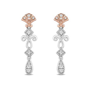 Jewelili Enchanted Disney Fine Jewelry 14K Rose Gold over Sterling Silver 1/6 CTTW Diamond Ariel Shell Earring