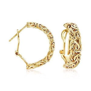 - HANDCRAFTED — Wear our luxurious Byzantine omega hoop earrings with pride, knowing that extra care and attention to detail was given in their creation. The craftsmanship and unmatched quality of this pair is sure to make it a favorite for years to come.