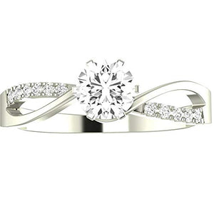 14K White Gold 1.08 Carat LAB GROWN DIAMOND Elegant Twisting Split Shank Round Cut Diamond Engagement Ring (G-H Color VS1-VS2 Clarity 1 Ct Center)